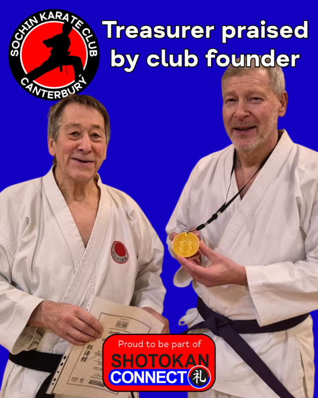 The founder of Sochin Karate Club, Georges Dussart, presented the club’s Treasurer, Simon Dolby, with a commendation to thank him for his role in supporting the club.